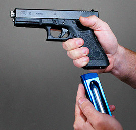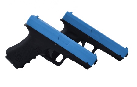 Our blue laser training pistol and VRG AR-15 are non-recoil dry fire weapons that are ideal where the presence of an actual handgun or long gun is unacceptable. The patented trigger design of the pistol is built for extreme situations to allow the non-gun to withstand over one million trigger pulls. Designed with realistic weight, sights and trigger pull, the pistol can also be used with standard holsters for a Glock 17 or 22.