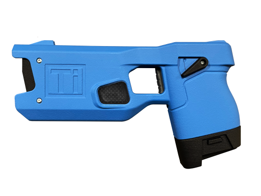 This TASER weapon is manufactured by TASER for Ti Training. It is a non-firing weapon. The weapon has the real Laser sight. The cartridges have 2 lasers at an 8 degree spread. A real TASER cartridge can NOT be fired by this “Safe” weapon. Force fail via operator is a standard feature with the Lead Instructor Software.