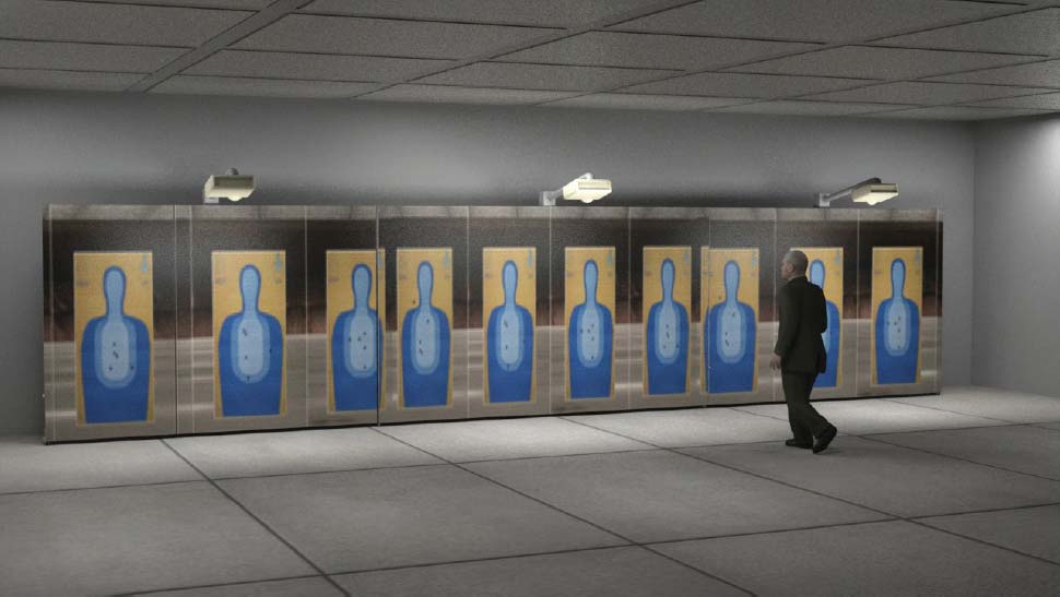 No matter what your training objectives are, the Recon 180 system can accommodate them. Mobility and real-life simulations are invaluable for enhancing Use Of Force training by incorporating relevant and realistic scenarios for shooters. In addition, the Recon 180 allows personal protection professionals to invest their time in a safe environment that is more cost-effective than the pricey ammunition at a traditional facility. With the addition of the Firing Line / Virtual Marksmanship Software (optional) you have the ability to fully customize your own firing range with up to 10 lanes. Plus, with a quick and easy adjustment, you can switch to a 180 degree judgment training scenario within an entirely immersive environment.