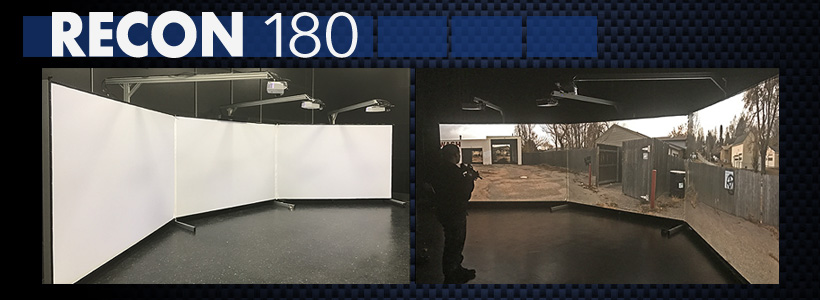 Offering the ultimate in immersive and expanded simulation training, the "Recon 180" projects up to 33 feet wide and incorporates a Gullwing 180-degree mobile screen system.