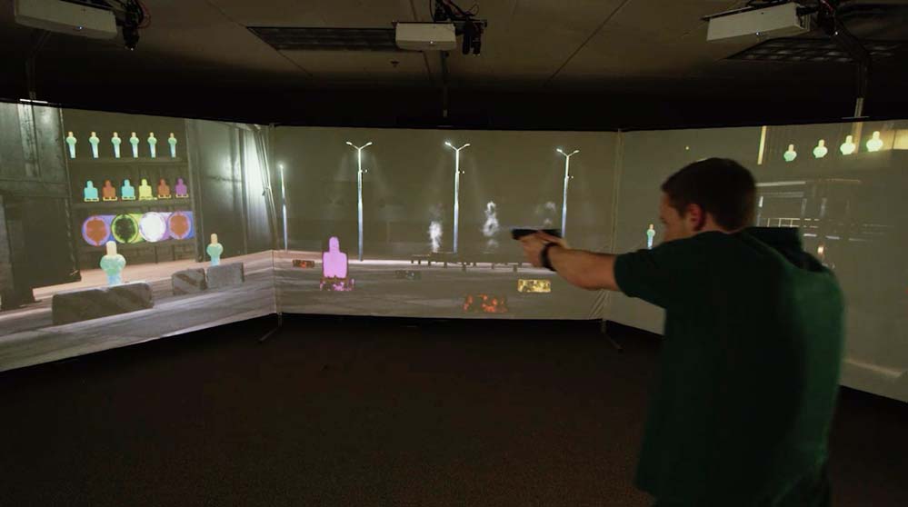 With the Gullwing configuration, you simply close the sides to maximize your training objectives. From up to 33 feet wide in the open position to 180 degrees closed - the system stays completely calibrated and can be moved easily and instantly to incorporate a vastly expanded array of virtual training options seamlessly. With Recon 180, shooters gain Use of Force training in a safe and controlled virtual environment. It also provides a practical evaluation of shooting competency that leads to higher likelihood of knowledge retention. This type of marksmanship training naturally improves the proficiency of shooters by combining firearm control with a cognitive processing environment. Simulation training provides the perfect opportunity for serious shooters to hone their skills, gain familiarity with a variety of weapons, and sharpen their judgment competencies in a safe environment.